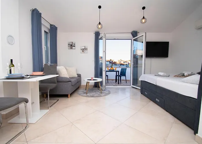 Az Isztriai Történelmi és Tengerészeti Múzeum egy 25 perces sétával elérhető, a Póla amfiteátruma pedig az ingatlantól 5 perc autózásra van. Egy 25 perces sétával eljuthat a városközpontba. A Marco Polo különféle európai, olasz és mediterrán ételeket szolgál fel. Ez apartman egy rövid sétára helyezkedik el az Uvala Plovanije területétől.